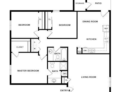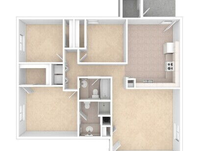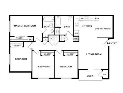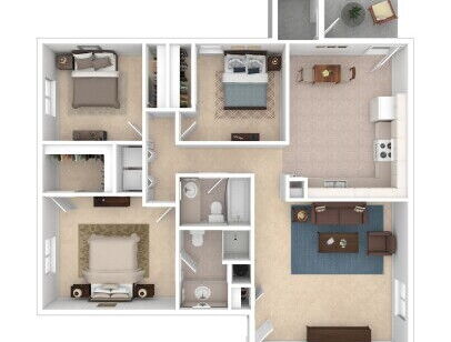 Our Geneva floor plan features three spacious bedrooms, central air and heat, and a fully-equipped kitchen with a breakfast bar.