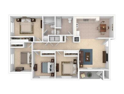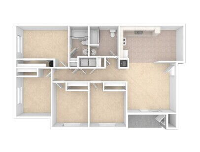 Our four-bedroom Melrose floor plan features two full baths, a fully-equipped kitchen with a breakfast bar, and central air and heat.